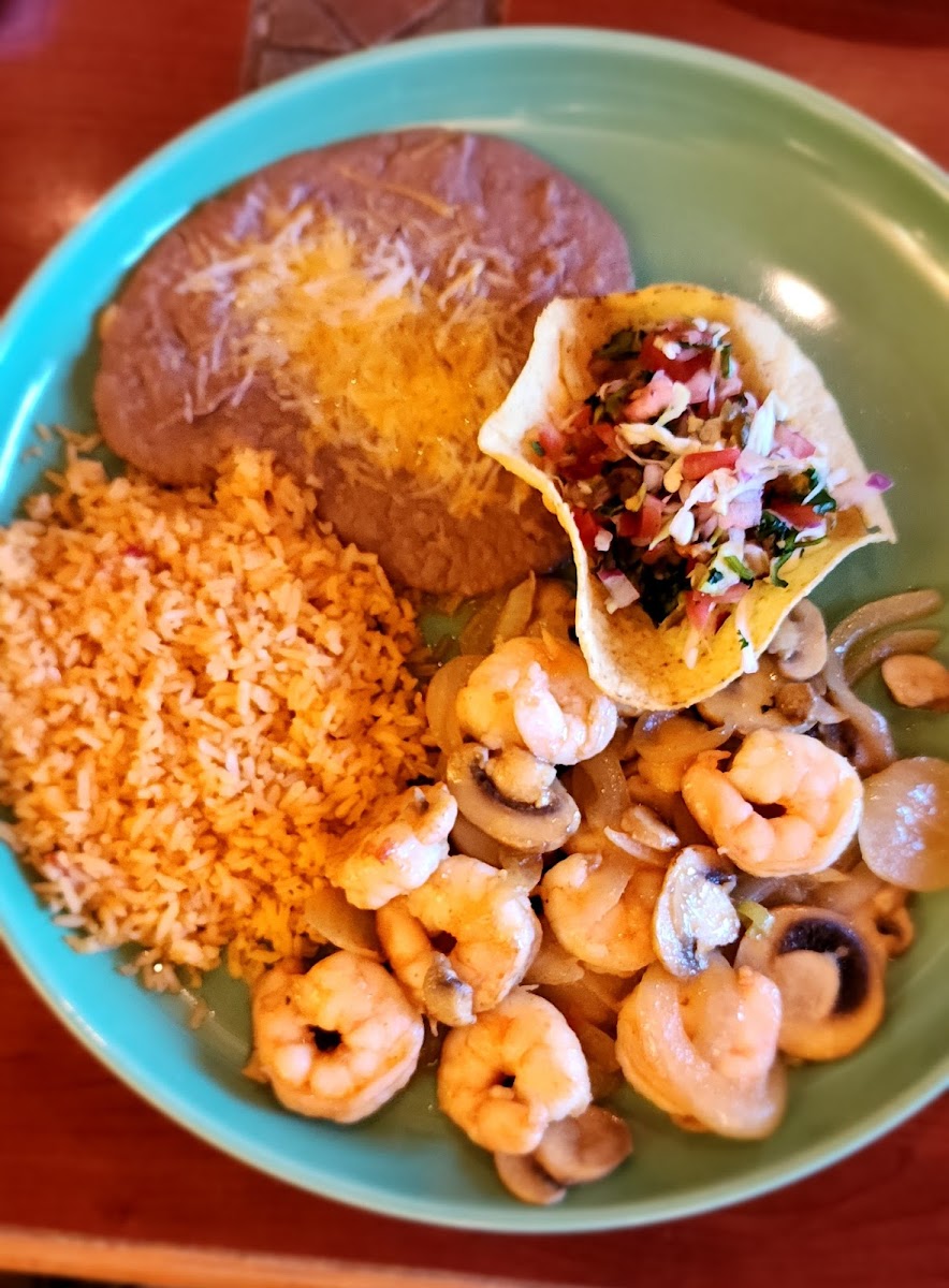 Easily could have been 5 stars, but the cooks didn't care to cook to order. The server was absolutely amazing. She was friendly, cordial, and always available. She was apologetic for the cooks as well. I have eaten here a few times, and the food is normally decent. There is nothing to rave about, but it is tasty while being fairly priced. I have failed to take pictures on previous visits, but I did this time. My Camarones Al Mojo De Ajo dish was disappointing. I asked for no onions and instead go lots of them, which were soggy. The dish advertised flavorful spices, but there was no evidence of them visually or in taste. It was surprisingly bland. This was unlike my previous visits, which included flavorful food. The rest of the meal was equally bland. The server is all that saved this review.